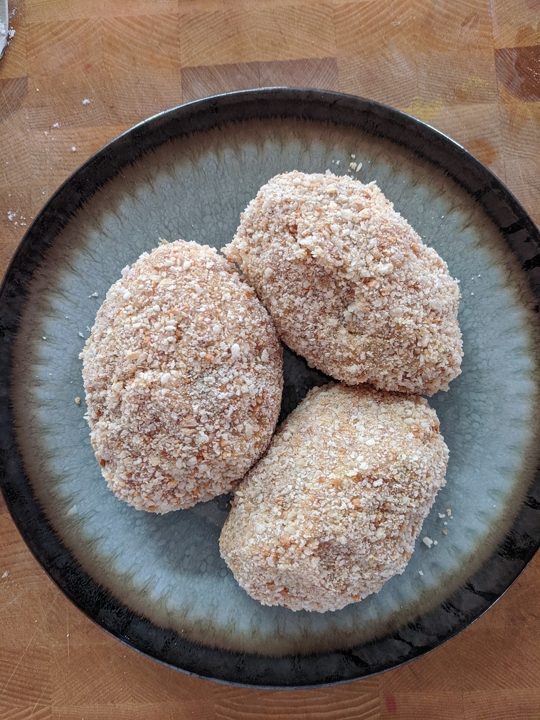 Nice. Thank you. I deeply appreciate the air fryer tips. My only change was made, because of gluten (I miss gluten...) was whisking the egg with a bit of oil (not flour) and rolling in cornflake crumbs. They were air-fried as well, mostly because I am too lazy to clean up after an oil fry. The pork recipe is spot-on porky goodness.