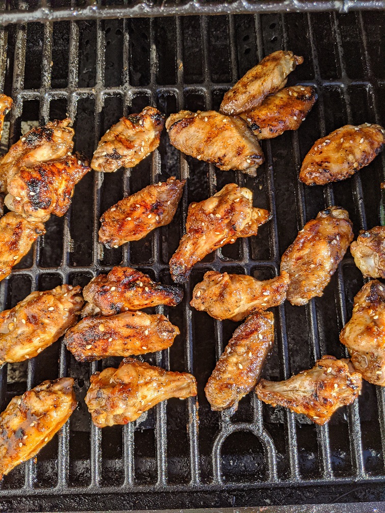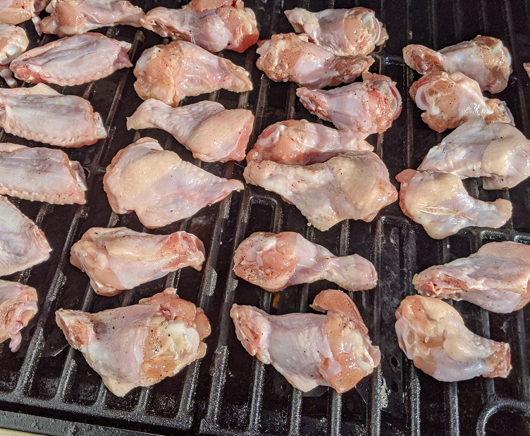 After five minutes I flipped the wings, turned the heat down a little bit, moved the wings around a little bit to make sure they were all getting even heat. I put the lid back down and cooked them for another five minutes.