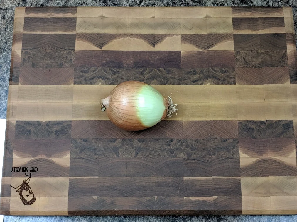 I started cooking at 7:40 pm. Like in the story the first thing I had to do was get the onions cooking.