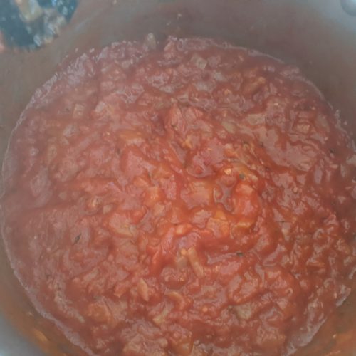 Add in the tomatoes, and a ¼ to ½ cup of water if needed then add in the rosemary and seasoning.
