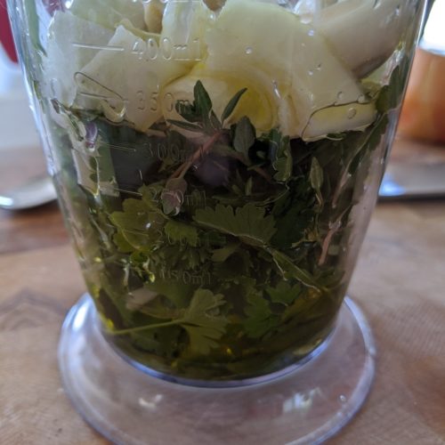 Green sauce is an all-purpose Caribbean sauce and marinade used for fish, pork, chicken, beef, or anything else.