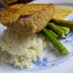 A quick and delicious DIY Shake and Bake Recipe with Pepper honey glaze, roasted asparagus, and mashed cauliflower.