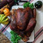 Once the turkey is cooked through remove it from the oven, loosely cover with foil, and let rest at least 20 minutes before serving.